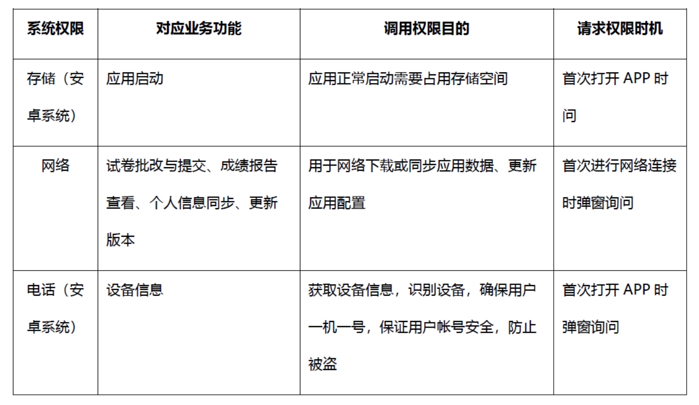我们为提供服务,会调用您的一些系统权限。下方我们列出了请求权限对应的业务功能、调用目的及请求时机。其中的所有权限,您都可以在系统的设置功能中选择关闭,关闭后我们将无法通过这些权限收集对应的个人信息。对于系统权限的具体操作方式,以您的设备系统开发者提供的说明为准。